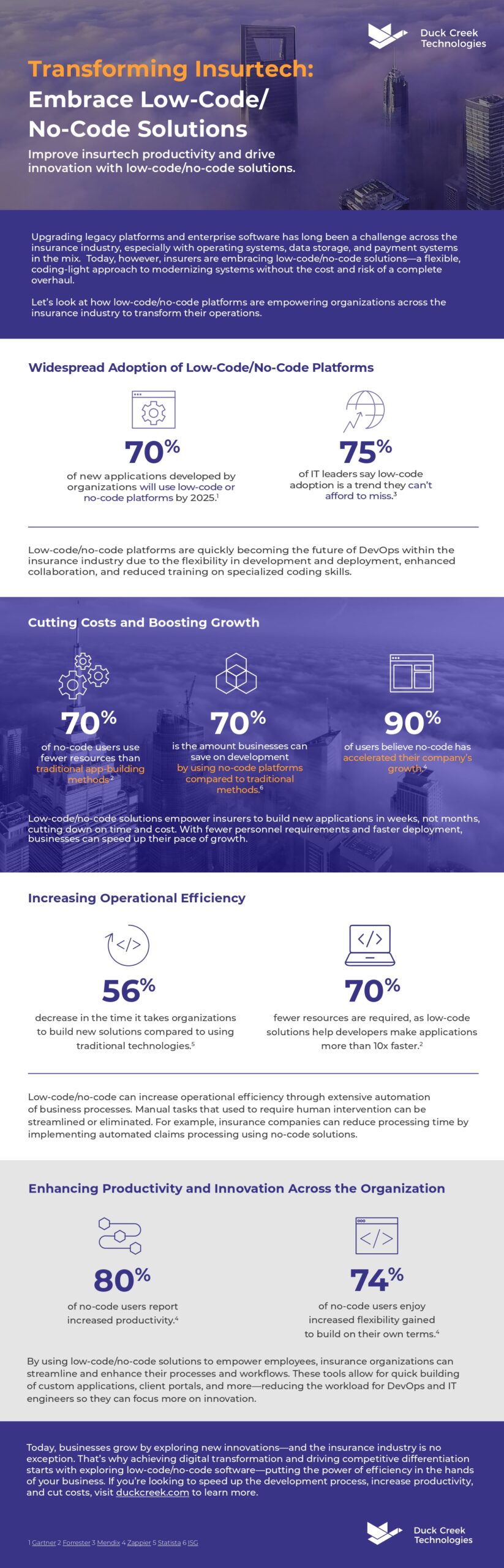 This infographic looks at the ways low-code/no-code platforms are empowering organizations across the insurance industry to transform their operations.