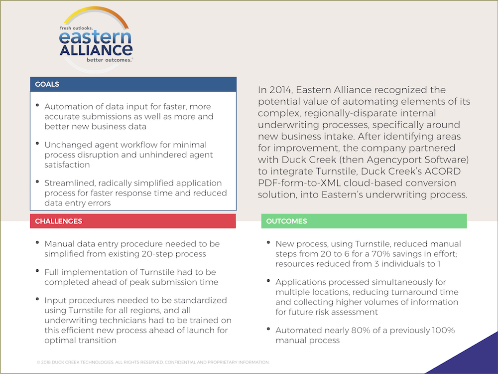 No matter what system you have (Duck Creek, home-grown, etc.) our Digital Engagement products can act as the front-end for any systems to create a unified and consistent experience for your users.